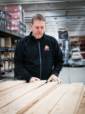 –De produktene det går aller mest av fra Stiltre hos oss er kledning og panel. Særlig om det er til noen litt mer spesielle prosjekter. Det som er virkelig verdifullt er at Stiltre har muligheten til å komme på befaringer for å bistå med spisskompetanse mot de spesifikke prosjektene, forteller proffselgeren.